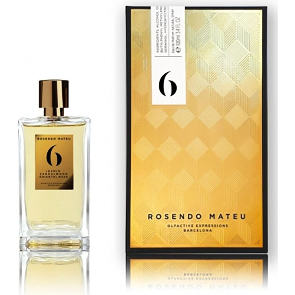Rosendo Mateu Nº 6 Jasmin, Bois de Santal, Musc Oriental Eau de Parfum est une fragrance unisexe sensuelle, crémeuse et profondément enveloppante. Une création sophistiquée qui met en lumière la richesse des matières nobles dans une composition à la fois élégante et addictive.